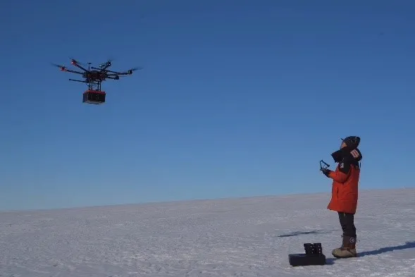 (利用影像无人机、无人机载冰雷达在海冰上为雪龙2号“探路”)